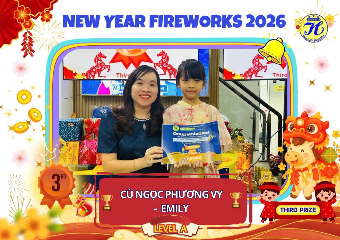 Vinh danh thí sinh xuất sắc cuộc thi “New Year Fireworks – Pháo hoa tân niên” Bảng A2 | 27/01/2026 | Galaxy English
