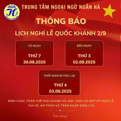 rong không khí thiêng liêng và tự hào của toàn dân tộc, kỷ niệm tròn 80 năm Ngày Chủ tịch Hồ Chí Minh đọc Tuyên ngôn Độc lập, khai sinh ra nước Việt Nam Dân chủ Cộng hoà – Anh Ngữ Ngân Hà xin trân trọng....