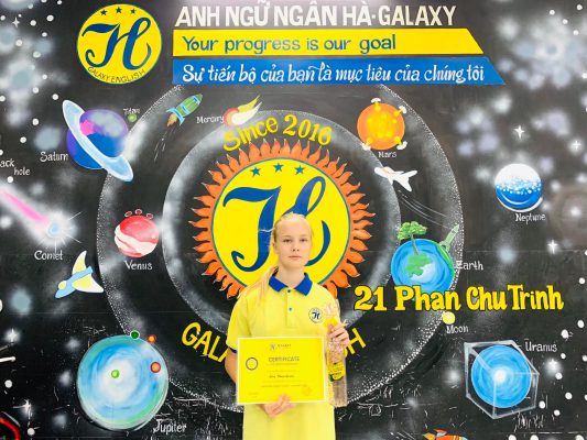Trung tâm Ngoại ngữ Ngân Hà tổ chức khen thưởng tặng quà và trao giấy khen cho 2 bạn học viên lớp Mars có thành tích xuất sắc trong bài kiểm tra cuối khoá .....