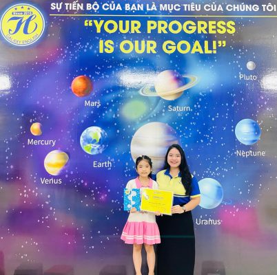 🌟✨ Chúc mừng học viên Galaxy English đã đạt thành tích cao trong kỳ Test cuối khoá vừa rồi. ✨ 🌈👑 Để khích lệ tinh thần học tập của học viên đạt thành tích cao trong kỳ Test cuối khoá, cũng như tạo động lực phấn đấu cho tất cả các bạn học viên, Trung tâm Ngoại ngữ Ngân Hà tổ chức khen thưởng tặng quà và trao chứng chỉ cho học viên : 🏆NGUYỄN NHƯ HÀ MY (Amy) – Class: Starters – Venus 🌏🌱♥️♥️ Chúc em sẽ luôn giữ vững tinh thần học tập tốt, kiên trì, không ngừng
