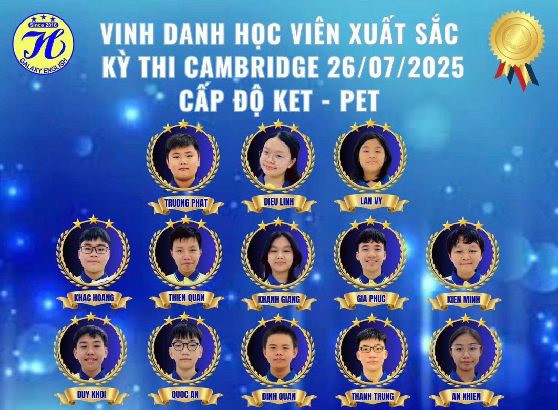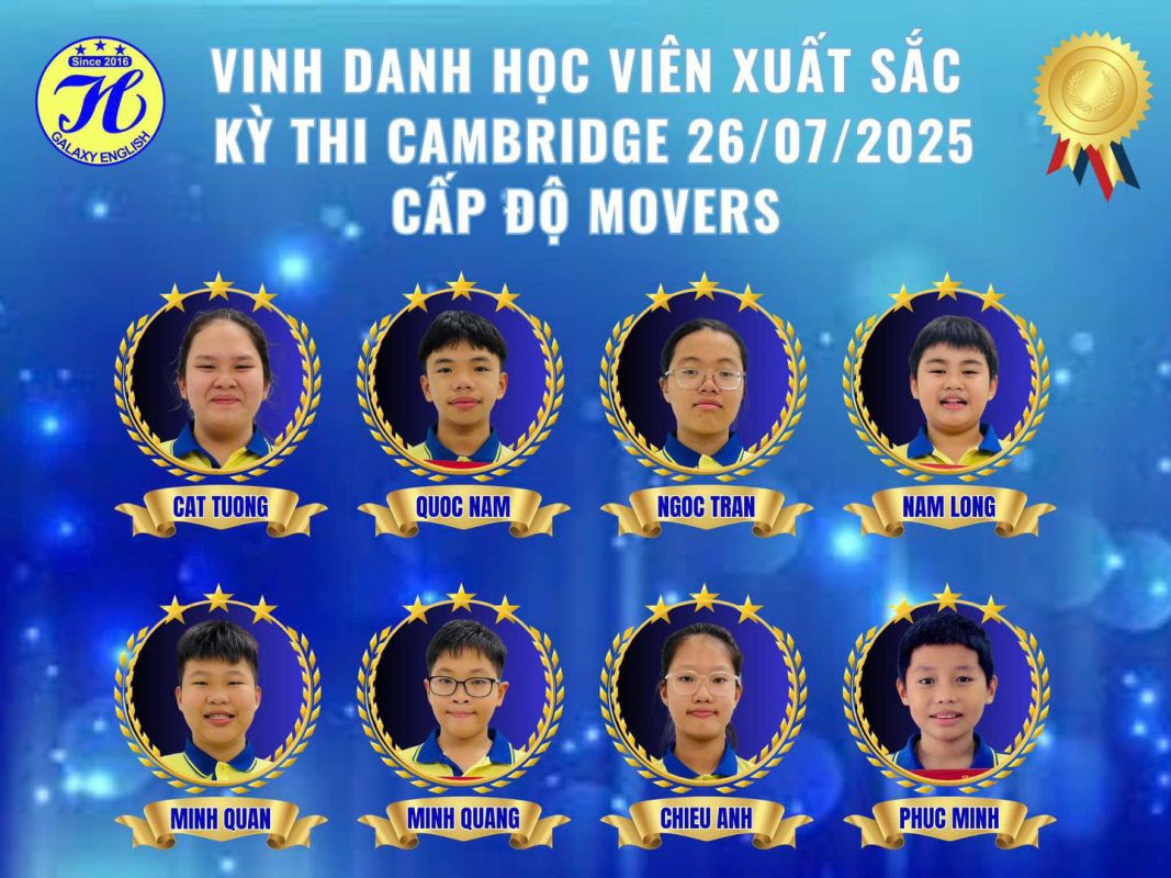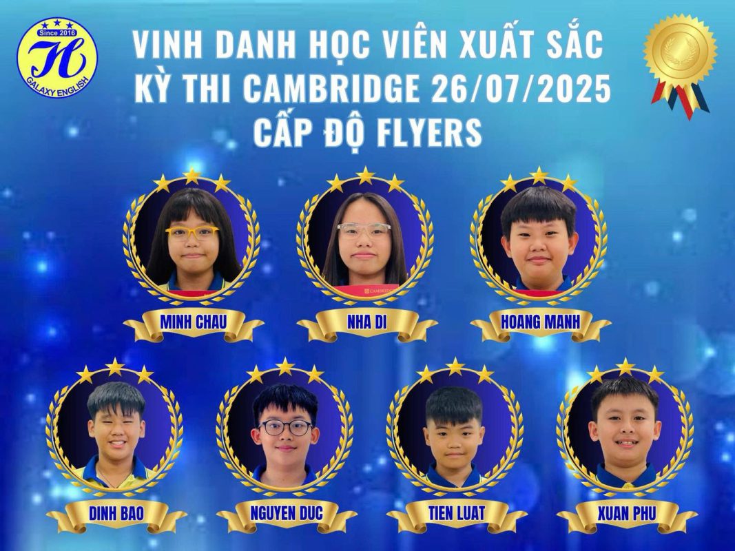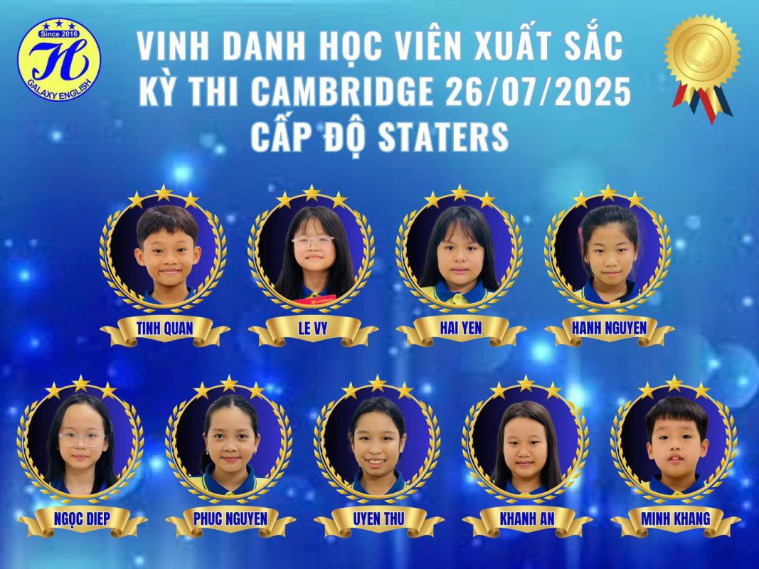Chúc mừng 37 ngôi sao sáng của Ngân Hà Galaxy English. Các con đã tỏa sáng rực rỡ trong kỳ thi Cambridge 26/07/2025!