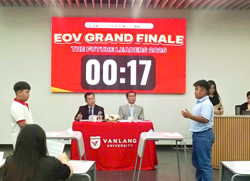💥🌍 Cuộc thi EOV 2025 — nơi các bạn trẻ khắp Việt Nam tranh tài, thử thách bản thân toàn diện: từ tiếng Anh, hùng biện, tư duy phản biện, sáng tạo, đến kỹ năng lãnh đạo — dưới chủ đề “Empowering Young Leaders”. Cuộc thi đã diễn ra vô cùng sôi nổi với sự tham gia của hơn 3000 thí sinh tài năng trên toàn quốc. Đây là một sân chơi lớn mang tầm quốc gia, nơi các em học sinh được thử thách, phát triển bản lĩnh, và thể hiện khả năng tiếng Anh trong môi trường cạnh tranh đầy chuyên nghiệp.