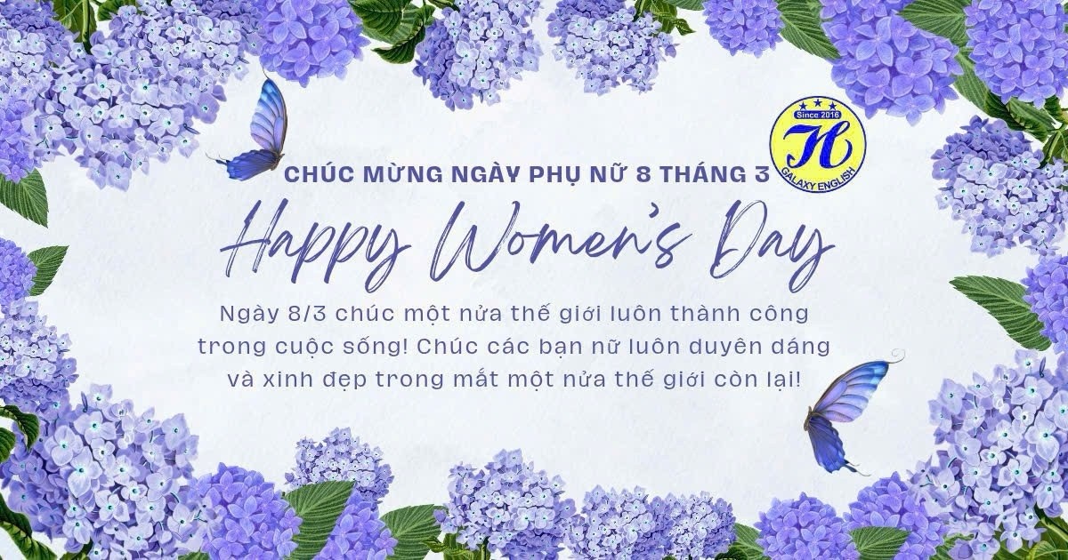 🥰 Galaxy English xin kính chúc toàn thể nhân viên, quý phụ huynh và các học viên nữ một ngày 8/3 thật vui vẻ, luôn xinh đẹp, tự tin, tràn đầy năng lượng tích cực và gặt hái nhiều thành công trong học tập, công việc cũng như cuộc sống. 🌷