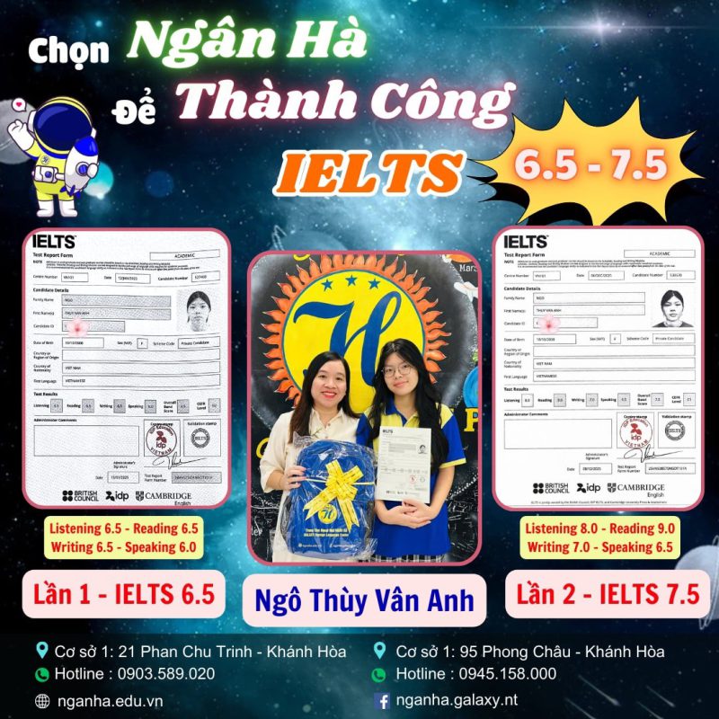 Trung tâm Ngoại ngữ Ngân Hà – Galaxy English trân trọng gửi lời chúc mừng đến Ngô Thuỳ Vân Anh – cô học viên đã ghi dấu ấn bằng sự tiến bộ rõ rệt qua từng giai đoạn học tập. Từ mức IELTS 6.5 ở lần thi đầu tiên, với tinh thần học tập nghiêm túc và phương pháp phù hợp, Vân Anh đã xuất sắc nâng band điểm lên IELTS 7.5 ở lần thi tiếp theo 🌱✨